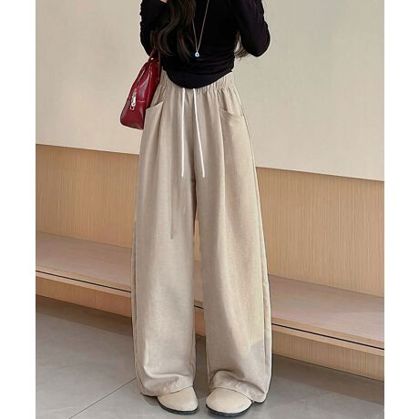 ウエスト総ゴムと紐付き仕様で穿きやすいワイドパンツ