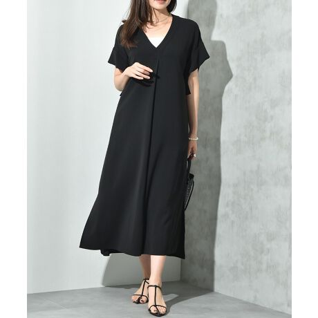 ウォッシャブル・接触冷感のメリット付き、そして軽やかでストレッチ性に優れた生地は、心地よい感触と優れた快適性をお届けします。深めのVネックできちんと感と女性らしさはKEEPしつつ、ゆったりリラックスして着まわせるお勧めなワンピースです。
