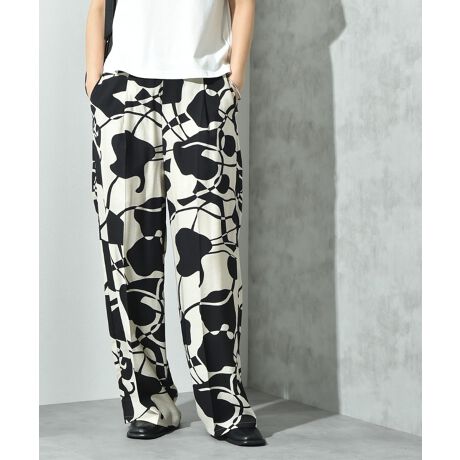 麻調ツイルモノトーンプリントパンツ