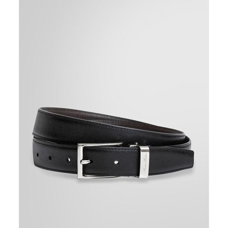 牛革を使った日本製のレザーベルトバックルを取り外すことができるリバーシブルタイプ、その日のコーディネートに合わせてお選びください。ブラックの面は細かな型押しを施し、光沢がありドレッシーな雰囲気を演出します。またブラウンの面はシボ革のような少しカジュアルな雰囲気の型押しにしております。主張し過ぎないシンプルなシルバーバックルなので、様々なシーンでお召し頂けます。ご自身でベルトをカットして長さ調節ができる仕様です。BOX入りなのでプレゼントにもお薦めです。