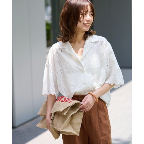 《追加》コットンカットワーク刺繍開襟シャツ