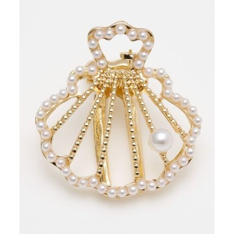 [型番:4KXZ5645-2025]小さなシェルモチーフのパールがポイントのヘアクリップ。ヘアアレンジにおすすめです。