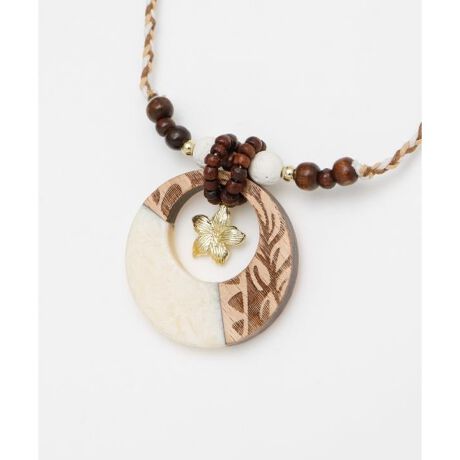 [型番:4IJZ5203-2025]プルメリアモチーフがウッド調のナチュラルテイストなネックレス。ポリネシアントライバルがポイント。優しさの中に力強さがあるハワイらしいデザインです。