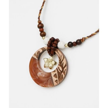 [型番:4IJZ5203-2025]プルメリアモチーフがウッド調のナチュラルテイストなネックレス。ポリネシアントライバルがポイント。優しさの中に力強さがあるハワイらしいデザインです。