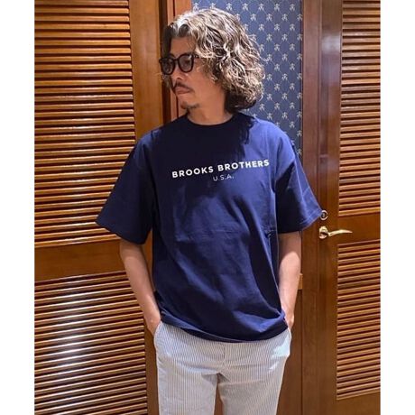 コットン素材を使用したオンライン限定Tシャツ程よい厚みとハリがあり、透けにくいコットン生地を使用。胸元に施されたBrooks BrothersのロゴプリントとU.S.Aの刺繍がオーセンティックでモダンな雰囲気を演出します。後ろ襟にもGF(ゴールデン フリース)マークの刺繍入りです。ゆったりとしたシルエットとシンプルなデザインなのでデイリーユースしやすく、ジャケットやカーディガンとのコーディネートにもお薦めです。男性用のサイズ表記ですが、男女問わず着用できます。