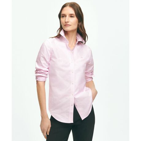 オックスフォードのストライプ生地を使用した長袖ボタンダウンシャツ