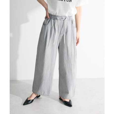 さっぱりとしたコットン素材で仕立てたパンツ。ルーズなワイドシルエットでレッグラインを拾いにくく、ゆったりと快適な穿き心地を叶えます。総ゴムのウエストで楽に着脱できるのも嬉しいポイント。後ろのポケットデザインが洒落感のあるアクセントです。どんなトップスとも相性よく、合わせ方次第でロングシーズン活躍するおすすめのアイテムです。透け感[なし]