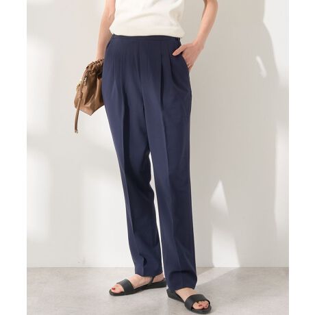 暑い日にも嬉しい、接触冷感生地で仕立てたテーパードパンツ。足首に向かって施したセンタープレスが美しいレッグラインを演出します。ウエストは後ろゴム仕様で着心地良く、フロントにタック入れることでお腹周りもキレイにカバー。デイリーからオフィスまで幅広いシーンで活躍するおすすめアイテムです。ご家庭で簡単にお手入れしていただけます。