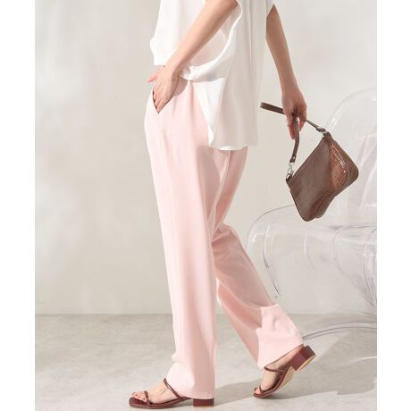 暑い日にも嬉しい、接触冷感生地で仕立てたテーパードパンツ。足首に向かって施したセンタープレスが美しいレッグラインを演出します。ウエストは後ろゴム仕様で着心地良く、フロントにタック入れることでお腹周りもキレイにカバー。デイリーからオフィスまで幅広いシーンで活躍するおすすめアイテムです。ご家庭で簡単にお手入れしていただけます。