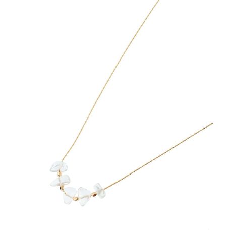 首元に上品な印象をプラスするサザレネックレス。天然石を使用したナチュラルな透け感が夏のスタイリングにぴったりなデザインです。スライドボールで簡単に長さ調節できるのも嬉しいポイント。デイリーからフォーマルシーンまで幅広くお使いいただけるおすすめのアイテムです。※モデル着用画像は、光の当たり具合で色味が違って見える場合がございます。※お使いのモニター環境によって商品の色味が違って見える場合がございます。
