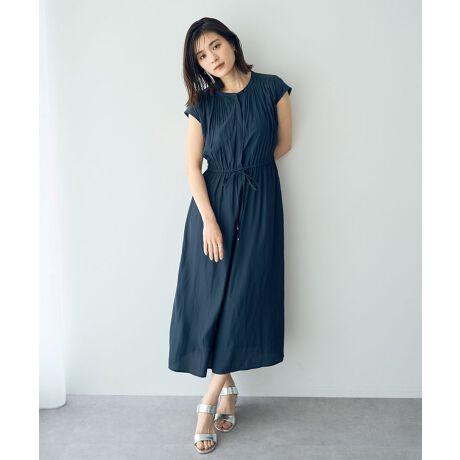 フレンチスリーブと、ギャザーを施した立体的なデザインが女性らしいシルエットを演出してくれるワンピース。