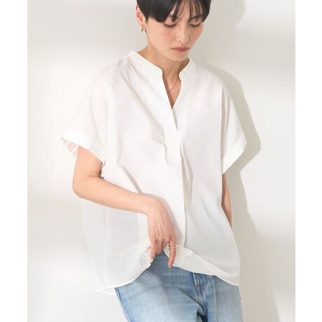 マットな印象のポリエステル素材で仕立てた半袖シャツ。フロントのスキッパーデザインが首元をすっきりと魅せ、爽やかな抜け感を演出します。ゆったりとリラクシーに着用出来るボックスシルエットも嬉しいポイント。さらっと1枚合わせるだけで上品なコーディネートが完成する、着回し力抜群なおすすめアイテムです。透け感[ややあり]