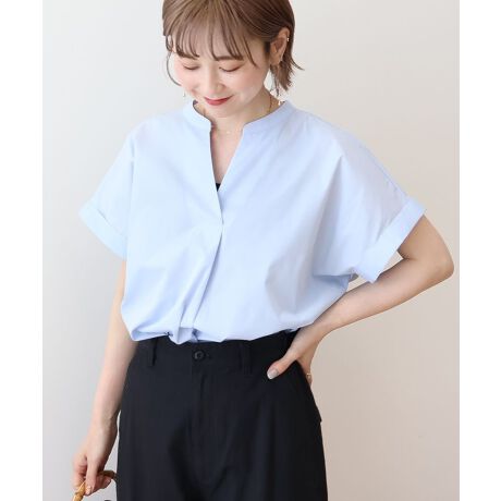 マットな印象のポリエステル素材で仕立てた半袖シャツ。フロントのスキッパーデザインが首元をすっきりと魅せ、爽やかな抜け感を演出します。ゆったりとリラクシーに着用出来るボックスシルエットも嬉しいポイント。さらっと1枚合わせるだけで上品なコーディネートが完成する、着回し力抜群なおすすめアイテムです。透け感[ややあり]