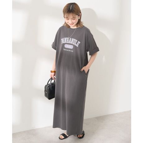 Tシャツワンピース ヴィンテージ ゆったり リラクシー ロゴプリント 折り返し袖 カジュアル 春夏 ワンピース 30代 40代 レディース カジュアル 春夏 25SS AMERICAN HOLIC AMERICAN HOLIC アメリカンホリック アメホリ