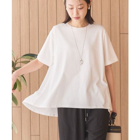バックフレアのこだわりシルエットが女性らしいスタイリングを演出する半袖プルオーバー。これからの季節に重宝する接触冷感性のあるコットン素材で快適な着心地を叶えます。前後差のある長めの丈感が腰回りまでしっかりカバー。どんなボトムとも相性の良く様々なコーディネートに合わせて楽しんでいただけます。