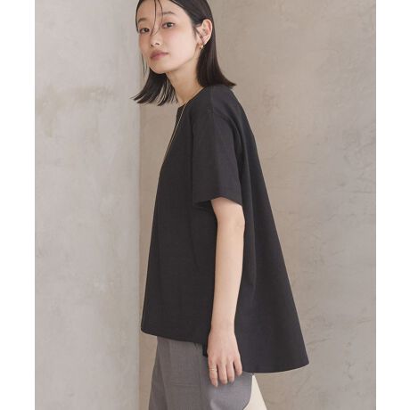 バックフレアのこだわりシルエットが女性らしいスタイリングを演出する半袖プルオーバー。これからの季節に重宝する接触冷感性のあるコットン素材で快適な着心地を叶えます。前後差のある長めの丈感が腰回りまでしっかりカバー。どんなボトムとも相性の良く様々なコーディネートに合わせて楽しんでいただけます。