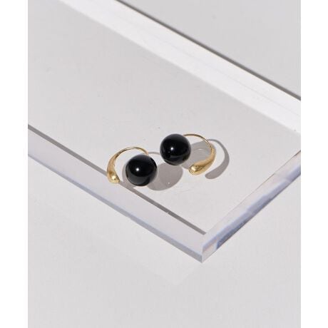 耳に引っ掛けるフックタイプのデザインピアス。シックなブラックカラーボールが揺れ、耳元にモードなエッセンスをプラスします。軽量でストレスフリーに着用できるのも嬉しいポイント。ご自身用はもちろん、ギフトとしても喜ばれるおすすめのアイテムです。※モデル着用画像は、光の当たり具合で色味が違って見える場合がございます。※お使いのモニター環境によって商品の色味が違って見える場合がございます。