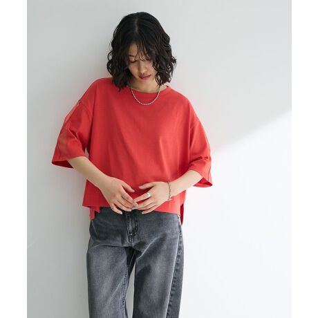 袖にライン状のチュールをドッキングしたトレンド感溢れるプルオーバー。ゆったりとしたオーバシルエット×短丈でパンツにもスカートにも合わせやすいデザインです。前後差をつけたテールロングがこなれ感を演出。上品な肌見せ感でヘルシーに着こなせる今季おすすめのトップスです。透け感[ややあり]