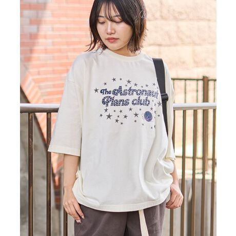 さりげなくラメが輝くロゴプリントがキャッチーなTシャツ。