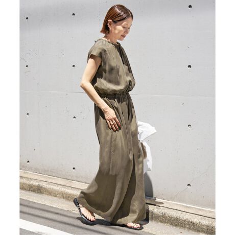 ネックラインとウエストにはギャザーを寄せ、肌離れの良いシルエットに。