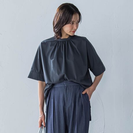 ボディは少しすっきりめで、フロントネックにギャザーを入れたよりベーシックなデザイン。