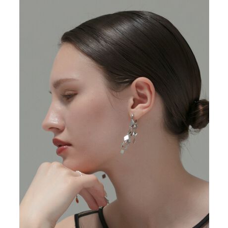 繊細なダイヤ型パーツが連なる、モダンで目を惹くロングピアス