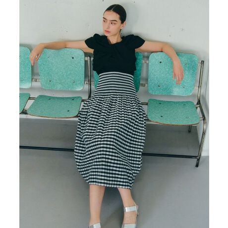 ウエストのシャーリングから広がるふんわりシルエットが楽な着心地と女性らしいシルエットを叶えます。