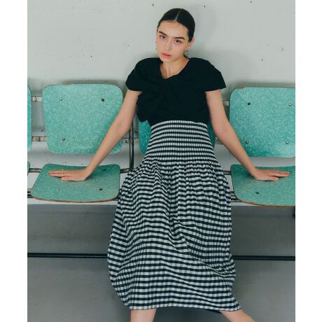 ウエストのシャーリングから広がるふんわりシルエットが楽な着心地と女性らしいシルエットを叶えます。