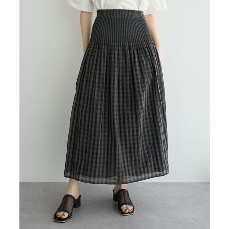爽やかなシアー素材のチェック柄とシンプルなワンカラーを裏表でドッキング。