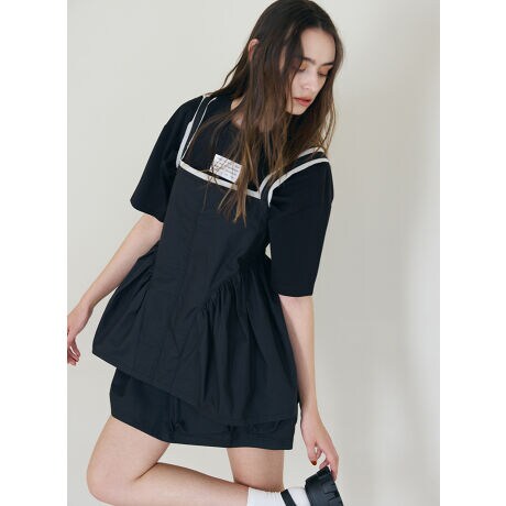 肩紐を調節し、レイヤードスタイルや1枚でも着用可能。