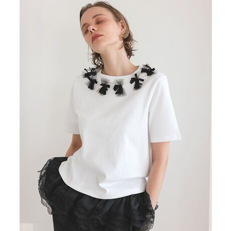 Donobanらしい大人ガーリーなチュールリボンをネックレスのように華やかに飾り付け。
