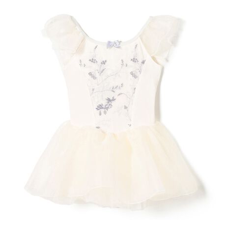 スカート部分にオーガンジーとソフトチュールを贅沢に使用したバレリーナのチュチュのようなデザイン。