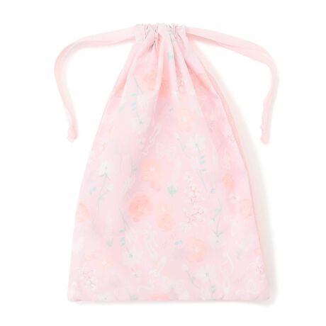 フラワー柄にポワントとバタフライが春らしいプリントの半メッシュ巾着Mサイズ