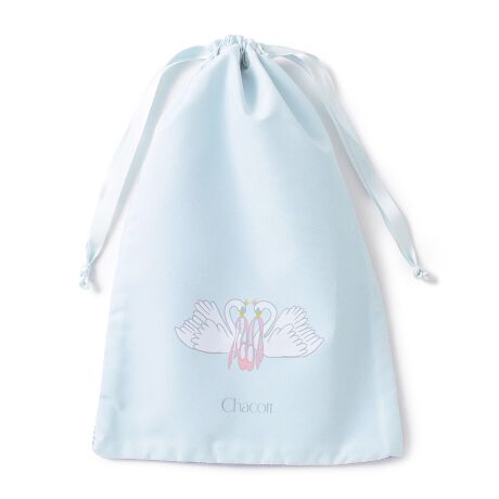 2羽の白鳥がポワントをくわえたキュートな刺しゅうの入ったデザインの半メッシュ巾着Mサイズ