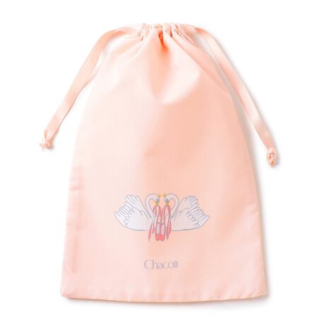 2羽の白鳥がポワントをくわえたキュートな刺しゅうの入ったデザインの半メッシュ巾着Mサイズ