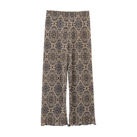 [型番:bw00121]柔らかな履き心地で楽ちん、プリントプリーツパンツ はくだけできまる主役級アイテム♪ ウエストは総ゴムでストレスフリーな履き心地を叶えてくれます。