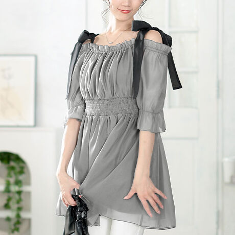 軽やかで女性らしい印象を演出する、オフショルチュニックです。ウエストはシャーリングを施し、程よくフィットしてくびれを作ってくれます。肩紐はリボン結びになって顔周りのアクセントに。広めのネックラインで美デコルテ&顔周りにすっきり感を出してくれます。シアー生地のチュニックはエアリー感もたっぷり。ギャザーをたっぷり入れてふんわり感をアップ。気になる腰回りを隠す着丈、ふんわり袖で体型カバーもばっちり。デイリー使いはもちろん、ちょっとしたお出かけにもぴったりの一枚です。