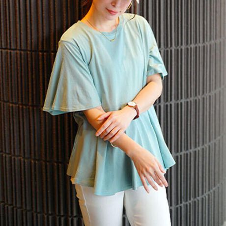 ぽっこりお腹を可憐にカバーするフレアスリーブペプラムコットンカットソー。ハイウエスト位置からフレアペプラムデザインで気になるぽっこりお腹&ヒップラインをふわりとカバーします♪体型を拾わないゆったり身幅&袖幅でリラクシーなサイズ感◎お尻がすっぽり隠れる前後差着丈で気になるヒップ&腰まわりをカバーし脚長見せしてくれるのも嬉しいですね♪通気性・吸湿性に優れた綿100%のカットソー生地で暑い季節も快適な着心地なのもオススメポイントです◎