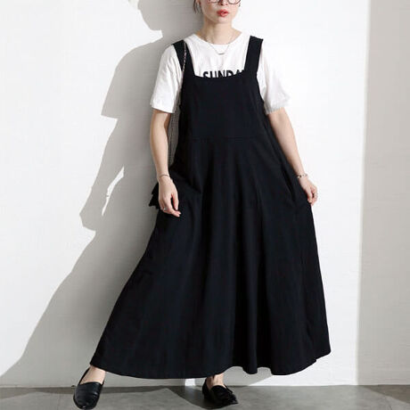 薄着派さん必見!暑い季節のプチストレス解消するインナー隠しコットンジャンパースカートが登場☆安定感のある幅広肩紐でブラ紐・インナー紐をしっかりカバーし綺麗に着こなせる♪後ろゴム&調節可能なバックリボン仕様でご自身にぴったりのサイズ感でご着用いただけます◎ほどよくゆとりのある脇ぐりでインナーを合わせてレイヤードスタイルも楽しんでいただけるのでロングシーズン活躍します☆通気性・吸湿性に優れた綿100%のカットソー生地で暑い季節も快適な着心地なのもオススメポイントです!