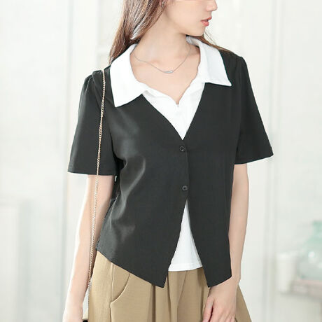 カジュアルからキレイめまで幅広く使えるレイヤード風のリブカットソーです。縦リブデザインですっきり感を強調。自然と細見え効果が期待できます。さらに適度なフィット感が身体のラインを引き締め美ラインを作ります。カーディガンを重ね着したようなドッキングデザインで着ぶくれを回避。シャツ+カーディガンはボタン開きになっているので、コーデの印象チェンジも◎ショート丈だからこそ、ハイウエストのボトムスとの組み合わせが相性抜群。視線が上がり、ウエストの位置が強調され脚長効果もばっちり。きれいめ&カジュアルコーデにもマルチに対応。様々な着こなしを楽しんでみてください☆