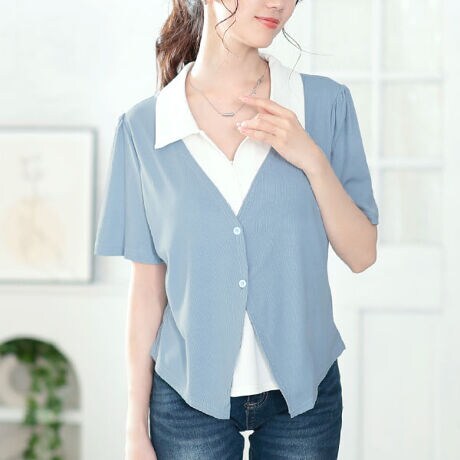 カジュアルからキレイめまで幅広く使えるレイヤード風のリブカットソーです。縦リブデザインですっきり感を強調。自然と細見え効果が期待できます。さらに適度なフィット感が身体のラインを引き締め美ラインを作ります。カーディガンを重ね着したようなドッキングデザインで着ぶくれを回避。シャツ+カーディガンはボタン開きになっているので、コーデの印象チェンジも◎ショート丈だからこそ、ハイウエストのボトムスとの組み合わせが相性抜群。視線が上がり、ウエストの位置が強調され脚長効果もばっちり。きれいめ&カジュアルコーデにもマルチに対応。様々な着こなしを楽しんでみてください☆