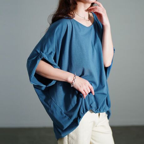涼しくお洒落を楽しむドルマンプルオーバー。触るとひんやり感じる接触冷感生地は暑い季節にぴったりの一枚!体型カバーに優れたドルマンスリーブに袖口タックのこなれ感&腕の華奢見せ効果◎フロント裾にはゴム切り替えでふんわり立体的にお腹周り&前後差丈でヒップラインもカバーでき、着るだけでキレイ見え。ストレッチ性があり、動きやすく着心地も快適です。