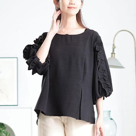 多機能で真夏も快適!乙女心ときめく接触冷感&UVカットフリル袖タックペプラムプルオーバー体型を拾わないゆったり身幅&袖幅でリラクシーなサイズ感◎お尻がすっぽり隠れる前後差着丈で気になるヒップラインをしっかりカバーしてくれます◎前後ともに裾のボックスタックでウエストをスッキリ見せし着痩せ効果も抜群です!ぽわんっと可愛いボリューム袖×たっぷりフリルデザインで華やかに着映えをしながら二の腕もカバー◎