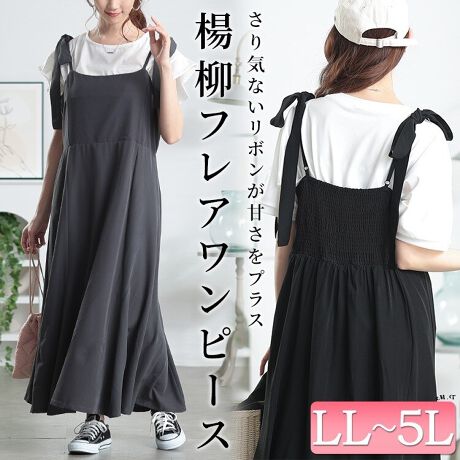 【大きいサイズ】 取り外し肩リボン楊柳キャミワンピース 大きいサイズ レディース ワンピース ロング