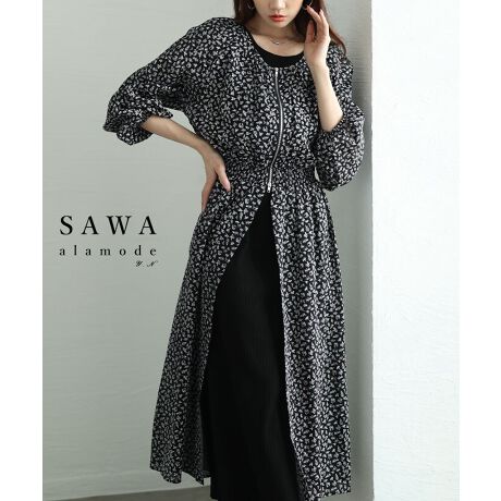 重ねて華やぐジップアップフラワープリントシフォンワンピース。ワンピースやコーデに重ねるだけで華やかにしてくれる1枚。小花柄のプリントが程よい甘さをプラスしてくれます。ウエストはゴムになっておりメリハリのあるシルエットに。ブラックですが透け感があるので重く見えず軽やかな印象にしてくれます。