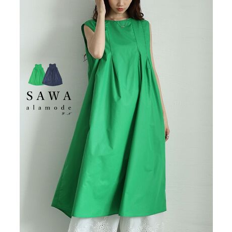 【ワンピース】ミディアム ロング ノースリーブ フレア グリーン 緑 ブルー 青 レディース 可愛い