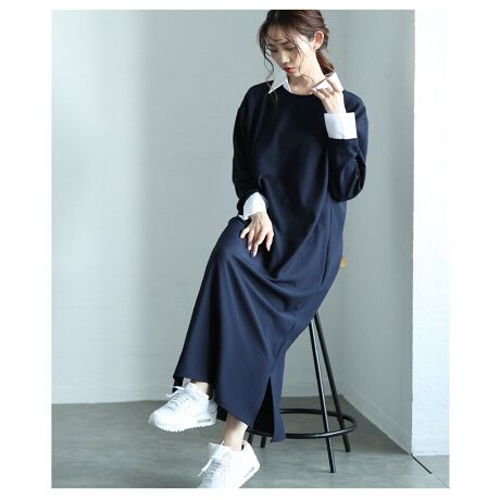 マルイウェブチャネル   /   サワアラモード   /   ワンピースドレス   /   ワンピース   /   【ワンピース】レディース ファッション ポロ ロング 長袖 紺 ネイビー バイカラー 無地 トラッド