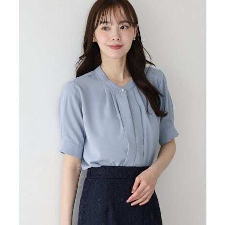 オフィスからおでかけまで幅広く着まわしやすいきれいめ半袖ブラウス