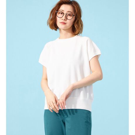 SOMETHING売上NO.1トップス MOCK NECK TEE(ST629)と同シルエットのニット素材バージョン。ラグランスリーブのカジュアルなデザインでも、ニット素材にすることで、大人っぽくこなれた印象に仕上がっています。素材は、強撚の綿糸を使用した12ゲージのニット。横糸にナイロン糸を使用することで、型崩れを防止。綿混ニットなので、通気性、吸湿性、吸水性が高く、着心地が良いのが特徴です。ニット素材なので、夏に気になる汗染みも目立ちにくいのも嬉しいポイント。家庭洗濯も可能でお手入れも簡単です。