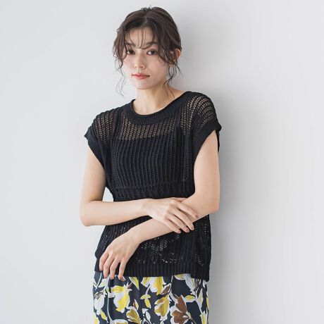 バケーションムード溢れるざっくり感が魅力のメッシュニットプルオーバー。
